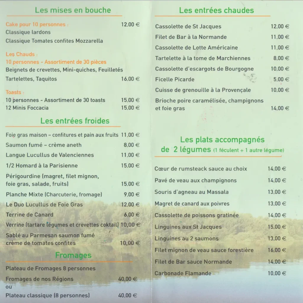 Un restaurant bien sûr, spécialiste des mets régionaux qui mettent l’eau à la bouche, des plats plus savoureux les uns que les autres ou le terroir fleur bon, des plats qui font du bien qui nous rappellent que notre région des Hauts de France sait produire de bons produits : fromages viandes poissons légumes et fruits frais… Bases de la cuisine de l’établissement.